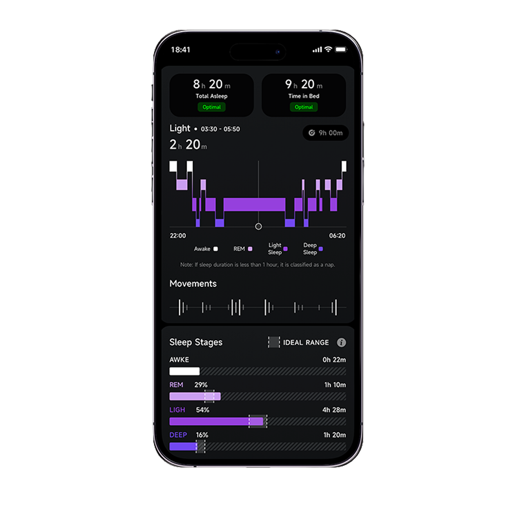 Track blood oxygen trends day and night, enhanced by AI pattern recognition for deeper health understanding.