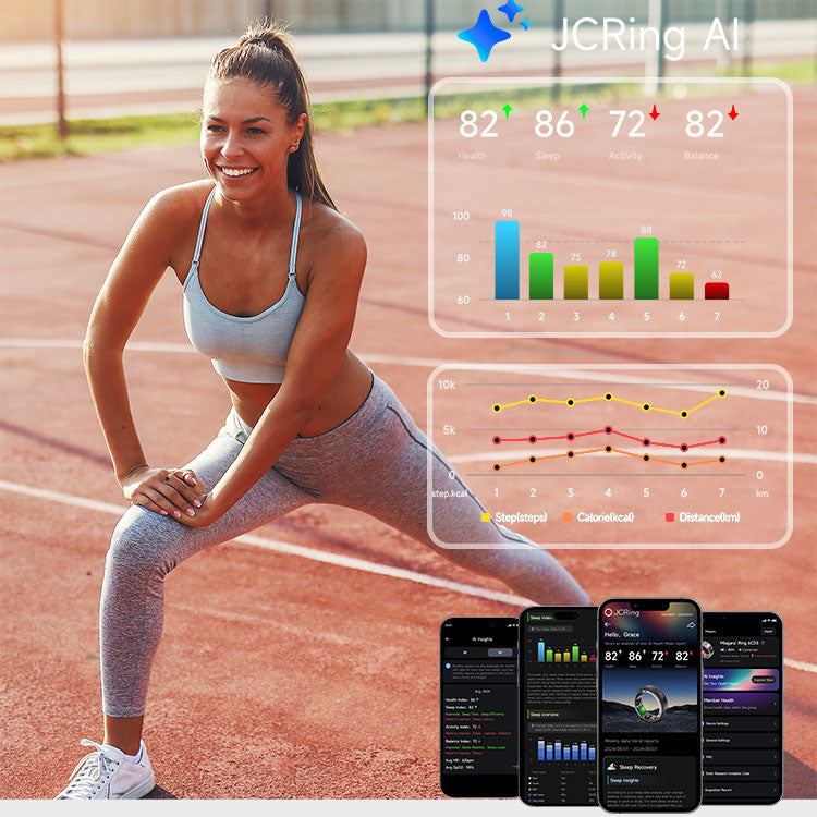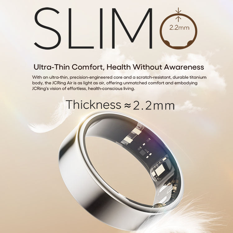The JCRing X6 (JCRing Air) is designed to be "Invisible." It features an ultra-thin profile of just 2.2mm and is crafted from aerospace-grade titanium. It is so light that most users forget they are wearing it within minutes, making it perfect for 24/7 health tracking, especially during sleep.