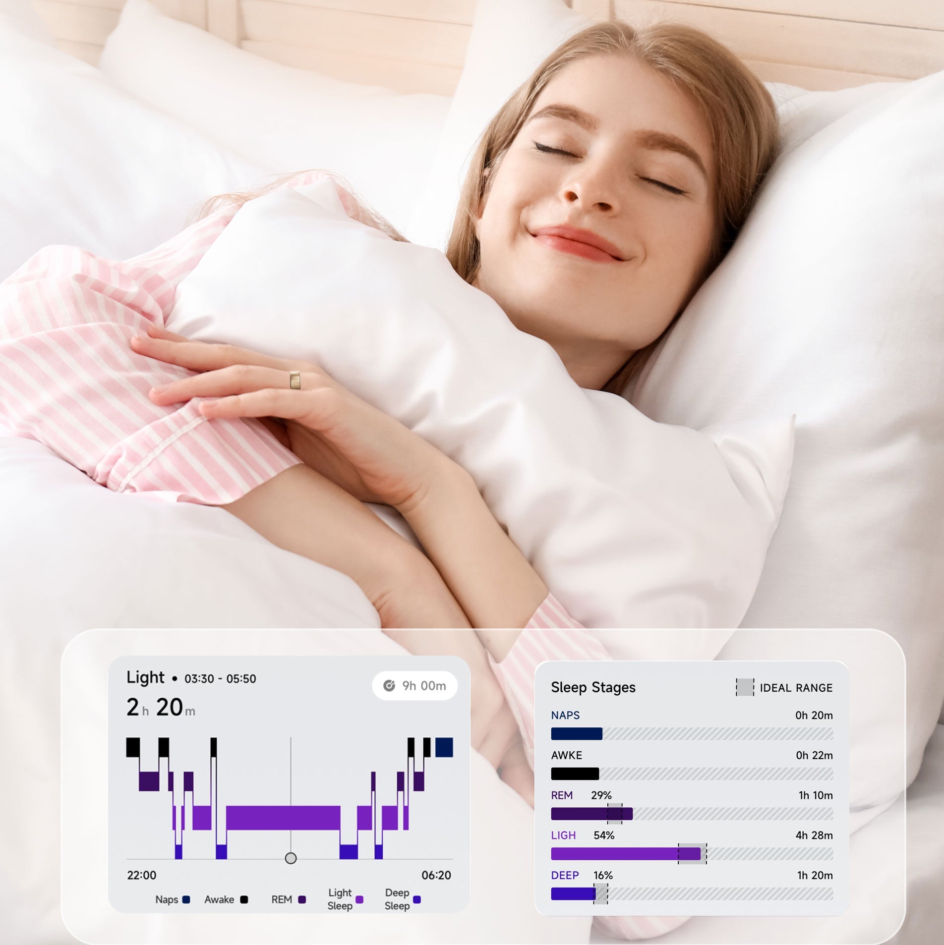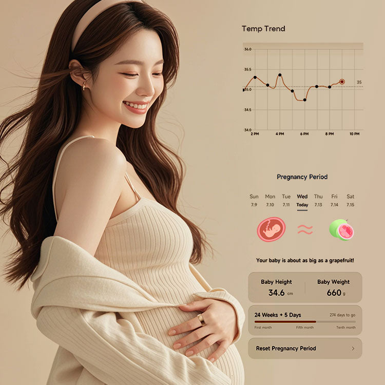 The ring features a medical-grade skin temperature sensor that tracks subtle fluctuations (0.01°C precision). By monitoring your basal body temperature (BBT) trends during sleep, it provides accurate ovulation insights and menstrual cycle predictions, helping you better understand your body and optimize your fertility window.